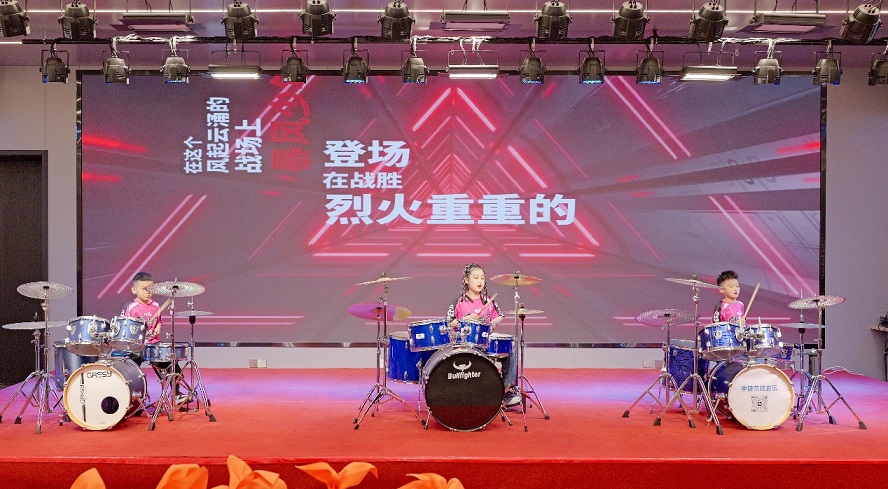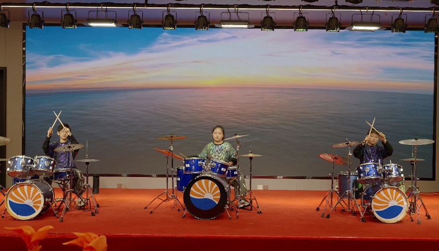 架子鼓《逆戰(zhàn)》:宋宗奕(新欣園公司宋立帥之子)、張芮萌(新啟元公司劉盈辛之女)、龔云哲(新欣園公司龔學(xué)佳之子)