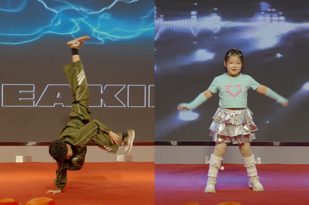 舞蹈串燒《夢(mèng)想節(jié)拍》:馬浩然(新欣園公司馬銘之子)、包熙苒(捷馨建材公司鄧媛之女)