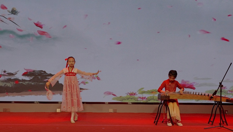古箏舞蹈《桃花妝》:朱梓瑜(集團(tuán)公司朱鑫林之女)、張芷暢(新啟元公司張悅之女)